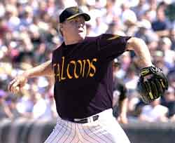 Men with 63. Team Pitching Records No one is likely to rewrite the record book in team pitching, either. The Philadelphia Endzone Animals lead the league with a 3.52 ERA, a long way away from Arkansas's 3.13 in 1992. Their pitching staff would have to combine for an ERA around 2.10 over the final 56 games of the season in order to challenge that record. ![]() Arkansas's 1,563 strikeouts in '99 also appears to be safe -- the Golden Falcons are the closest team, with 931 Ks, a pace that would give them less than 1,400. They'd have to pick up about three more Ks a game over the final third of the season to finish within striking distance of their own league record.
