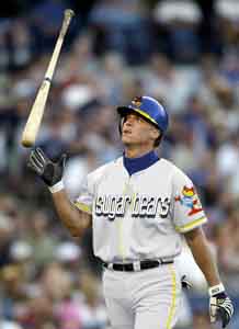 The second-half batting title went to Hoboken's Juan Pierre (.339 BA, .393 OBP, 95 H), who got his groove back after being dealt from Phoenix to Hoboken. The centerfielder was batting only .255 before the swap for Garret Anderson. After a hot start the first half, Anderson hit just .221 with 6 HRs during his second half for the Dragons. Another Dragons outfielder was third in second half batting. Rookie Ichiro Suzuki, who led the league in hits the first half (110) and the second (119). He batted .337 the second half after hitting .303 the first half.