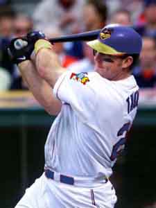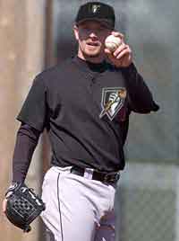Hoboken's Mike Piazza (.276, .839 OPS, 24 HR, 59 R, 64 RBI) is appearing in his ninth straight All-Star Game for the Hanover Division. Piazza holds the records for most All-Star games as well as most consecutive appearances. For the third straight year, he'll share the catching duties with Phoenix's Jorge Posada (.243, .728 OPS, 20 2B, 7 HR, 28 RBI). The catching duties for the Morris Division will be shared by seven-time All-Star Ivan Rodriguez (.285, .764 OPS, 19 2B, 9 HR, 32 R, 40 RBI). The Columbia catcher is making his sixth-straight appearance this season. Backing him up will be Vancouver rookie Brian Schneider (.281, .825 OPS, 25 2B, 7 HR, 33 RBI), who can add an All-Star appearance to his first-year resume. Making his first All-Star Game since he won the MVP Award in the '99 contest is Arkansas 1B John Olerud (.308, .841 OPS, 14 HR, 67 R), his fourth selection to the squad. Hillsborough's Alex Rodriguez (.300, 1.018 OPS, 33 HR, 69 R, 73 RBI) will be the Morris shortstop for the fourth straight year, his sixth All-Star appearance overall, while Vancouver 2B Jeff Kent (.251, .775 OPS, 17 HR, 56 RBI) made the team for the third straight year, fourth overall. The third baseman is Carolina's Aubrey Huff (.300, .794 OPS, 12 HR, 43 RBI), making his All-Star debut. Tijuana's Bret Boone (.236, .702 OPS, 11 HR, 36 RBI) made the team for the second straight year. Newark 1B Jim Thome (.355, 1.395 OPS, 40 HR, 73 R, 92 RBI), a five-time All-Star, was the top vote-getter in the Hanover infield. Manning the opposite corner will be Hoboken's Joe Randa (.283, .770 OPS, 22 2B, 34 R, 40 RBI), a six-year DMBL veteran finally making his All-Star debut. Stanhope's Alfonso Soriano (.241, .629 OPS, 10 HR, 46 R, 36 RBI, 17 SB) won enough votes to make the team as a reserve despite a somewhat disappointing first half. The rest of the infield goes to the Sharks: Eric Young (.292, .704 OPS, 16 2B, 49 R, 14 SB), whose only other All-Star appearance came when he was with the Sugar Bears in '99, gets the start at second base, while five-time All-Star Jason Giambi (.313, .995 OPS, 20 HR, 62 R, 67 RBI) made the team as a reserve. And can you believe that this is the first year that Miguel Tejada (.277, .723 OPS, 9 HR, 51 RBI) made the All-Star squad?