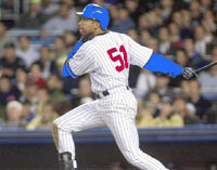 When Bob Wickman blew a save for Carolina on March 7, it broke a logjam near the bottom of the all time top 10 in blown saves; but only for the moment. Nine of the closers in the top 12 not only are still active, but many are still closers. Wickman started the year tied for 10th with Jose Mesa of Philly and Honolulu's Ugueth Urbina with 20 blown saves. With his first blown save, however, he tied Armando Benitez, who's in Philly's bullpen this season, with 21. Mesa joined the two when he was saddled with a blown save when he gave up Sheffield's milestone dinger. The first one to 22 will match John Wettleland for 8th on the list. Vancouver's Edgar Martinez ended the week with 11 RBIs for the season, 5 coming in Sunday's 8-2 win over Stanhope, but also 890 for his career, just one behind Belle for 8th on the all-time list. One would expect the DH to pass Belle during the Iron Fist's road trip this week, in Stanhope Monday or in Columbia for a three-game set through Thursday. Trailing only league leader Barry Bonds, Sammy Sosa has 15 RBIs and should soon pass Belle as well, as he continues to chase teammate Edgar. The two started the year 8th and 9th, respectively, on the all-time RBI list, just 17 apart. | ||||||||||||||||||||||||||||||||||||||||||||||||
